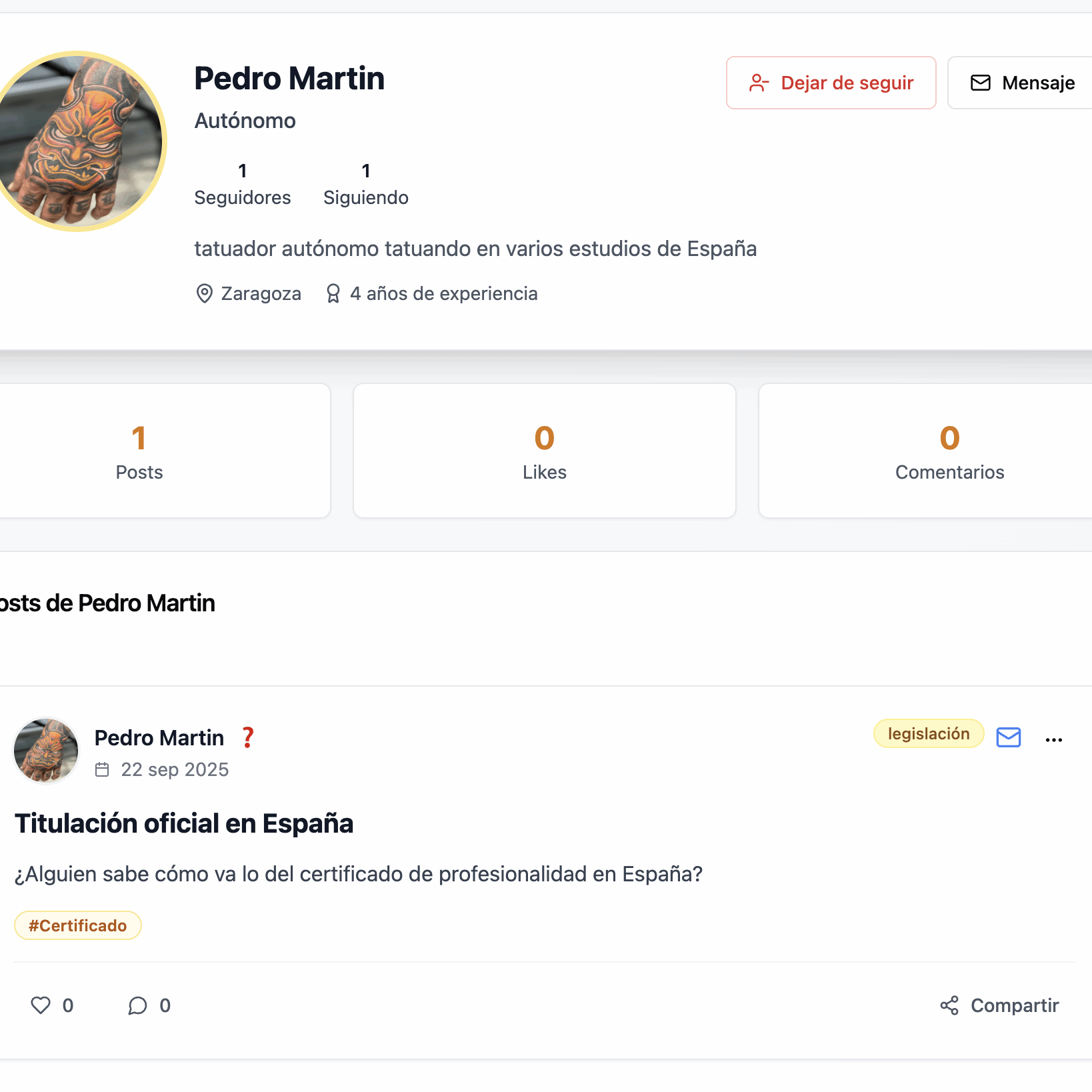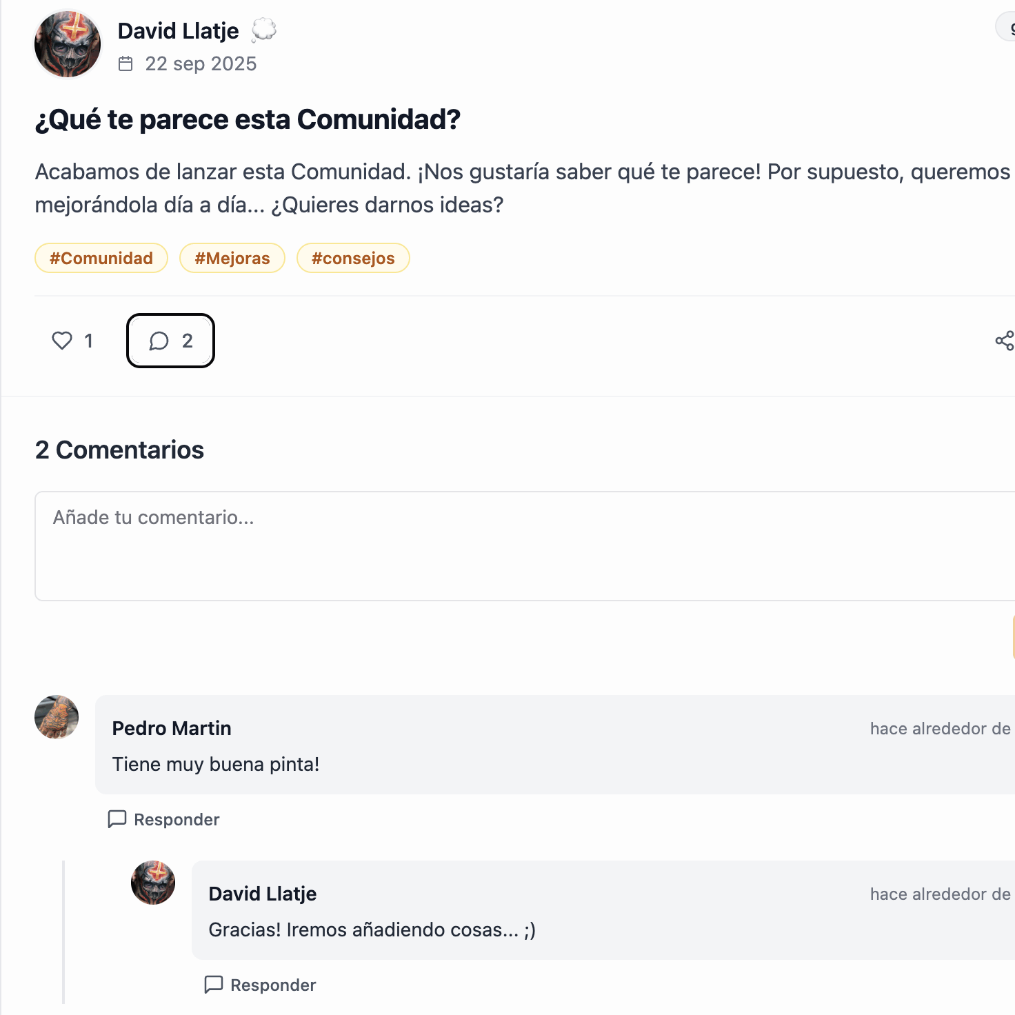 Por supuesto, como en cualquier red social, podrás hacer o recibir likes y comentarios en los distintos posts publicados. Comparte y valora para crecer juntos.