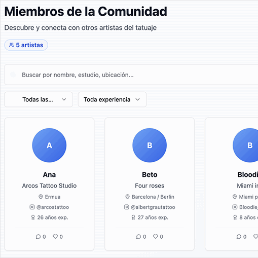 Nuestro Inkhub está pensado para estudios de tatuaje, tatuadores y tatuadoras profesionales y amateurs.