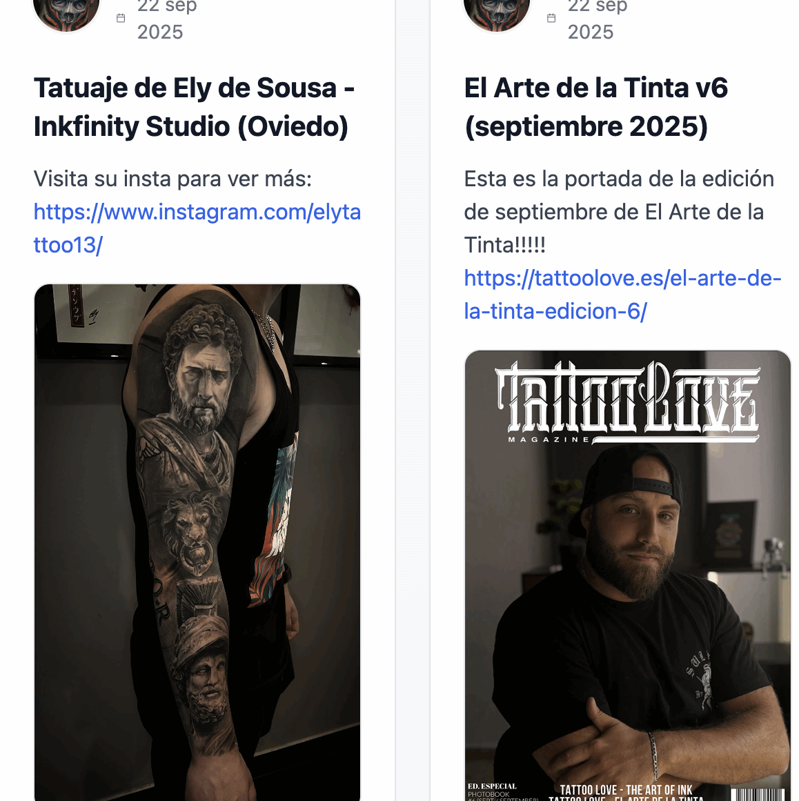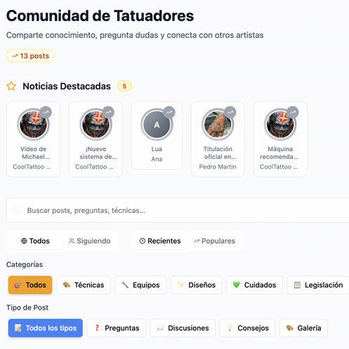 En la parte superior te mostramos noticias que no puedes perderte así como información relevante o tatuajes destacados de otros miembros de la Comunidad.