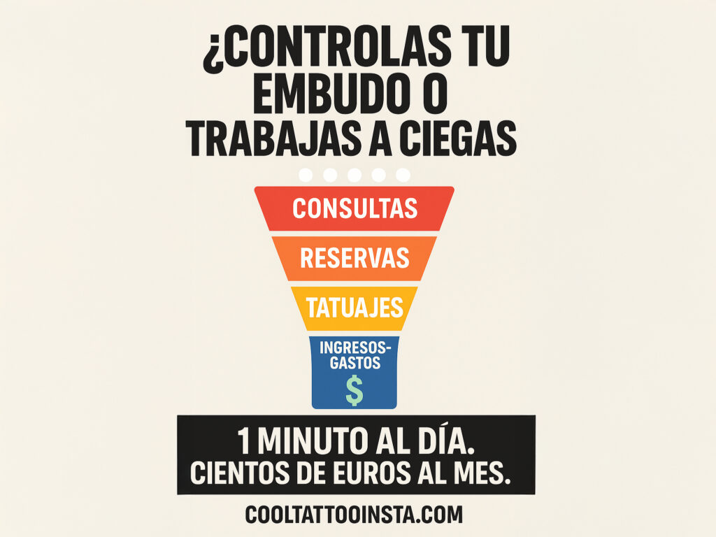 En Cool Tattoo Insta tienes una herramienta específica para tatuadores que registra tu embudo en 1 minuto al día: consultas, reservas, tatuajes e ingresos. El panel te muestra si el estudio es viable, cómo evolucionas y qué palancas tocar para mejorar resultados.