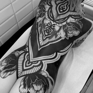 El próximo 15 de noviembre tendrás la oportunidad de aprender de una de las grandes figuras del tatuaje ornamental: Elisa de Bellard. Con una formación en Bellas Artes y más de diez años de trayectoria, Elisa ha desarrollado un estilo muy personal que fusiona ornamental, blackwork, mandalas y fineline, logrando piezas de una precisión y armonía excepcionales. Su trabajo la ha llevado a colaborar con estudios reconocidos en España y otros países, además de participar en convenciones y eventos internacionales.